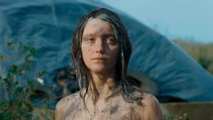 In conclusione, buone le intenzioni e a suo modo originale lo sviluppo del soggetto, che attinge a più generi ma che mostra un po’ la corda nel gestire la molta carne messa sul fuoco: elaborazione del lutto, ecologismo, senso di insicurezza immanente vissuta dalla donna, ecc. Molte tematiche a cui attingere, quindi, ma di non facile armonizzazione, con l’aggiunta di un’eccessiva sessualizzazione di Eva, davvero poco funzionale alla storia. Brava Carol Duarte, già ne La Chimera di Alice Rohrwacher, nel conferire stralunatezza e profondità al personaggio.